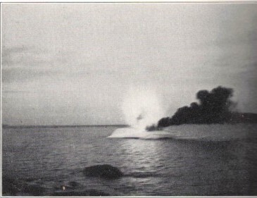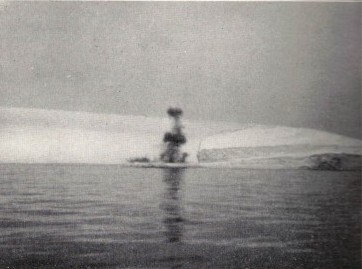 Barnes, Ice Engineering, p. 340. Fig. 66. Iceberg exploding and burning under the fierce heat of a thermit charge